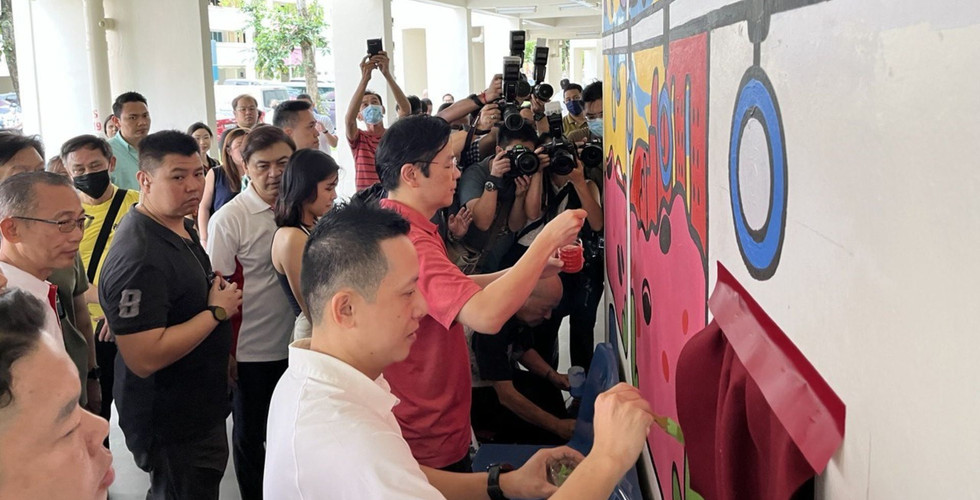 Wayfinding murals at void decks, designed by students and paired with QR codes offering lifestyle tips